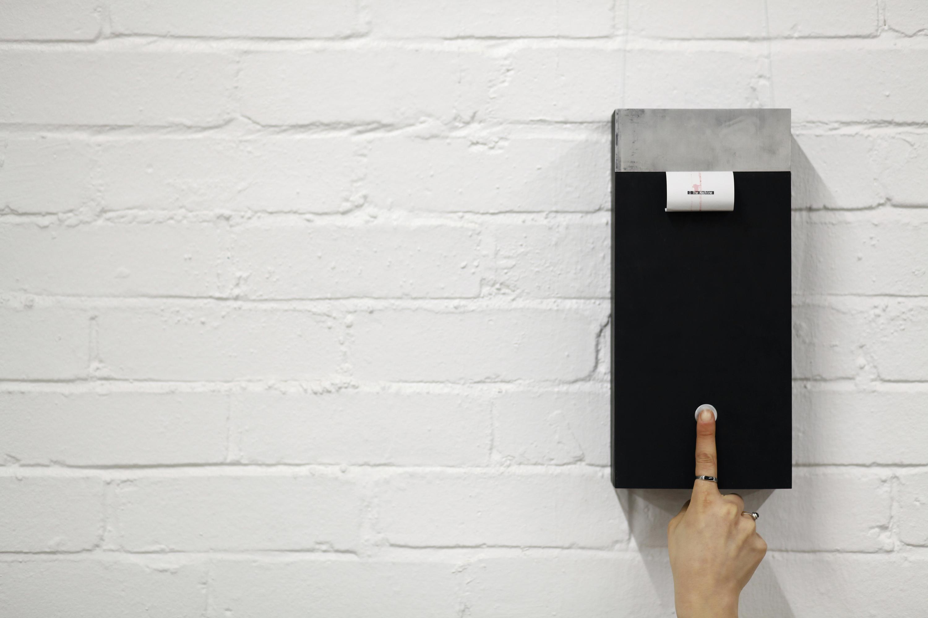Physical wall-mounted device which prints a randomised project title at the press of a button. The data is draws from was collated from the previous decade of Goldsmiths BA Design project titles.